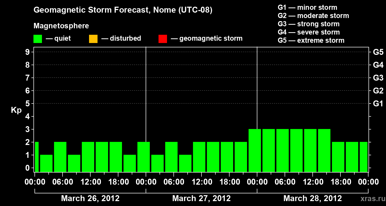 Geomagnetic storm forecast in Nome for Mar 26, 2012