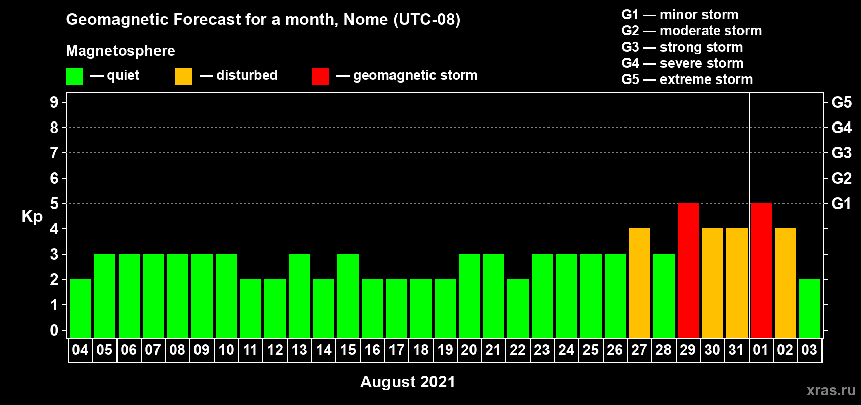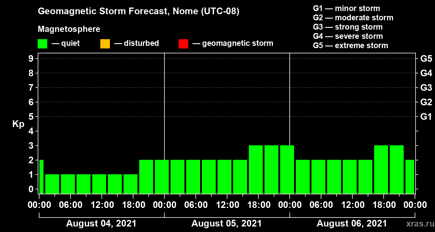 Geomagnetic storm forecast in Nome for Aug 04, 2021