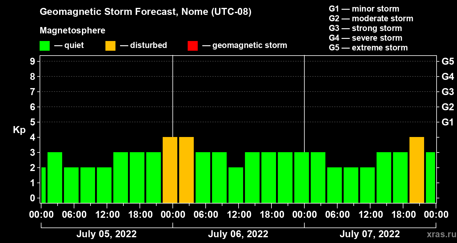Geomagnetic storm forecast in Nome for Jul 05, 2022
