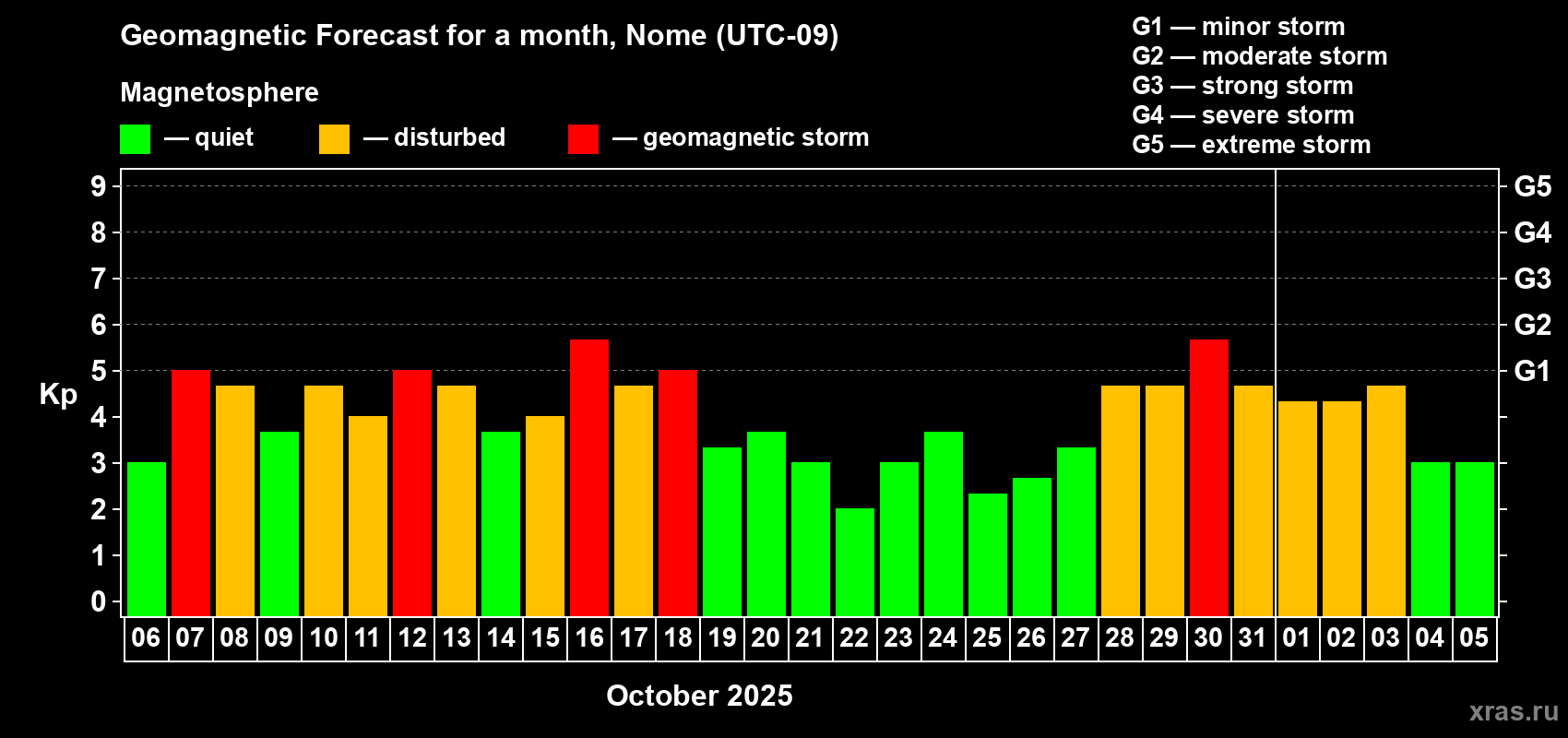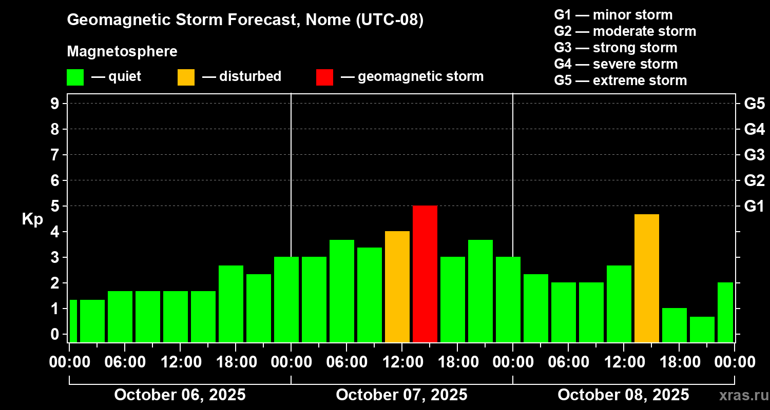 Geomagnetic storm forecast in Nome for Oct 06, 2025
