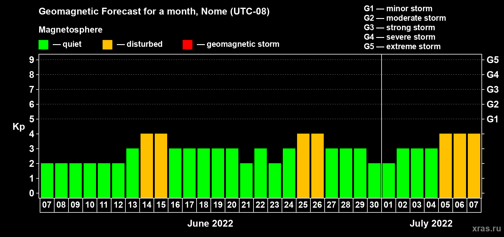 Geomagnetic storm forecast in Nome for Jun 07, 2022
