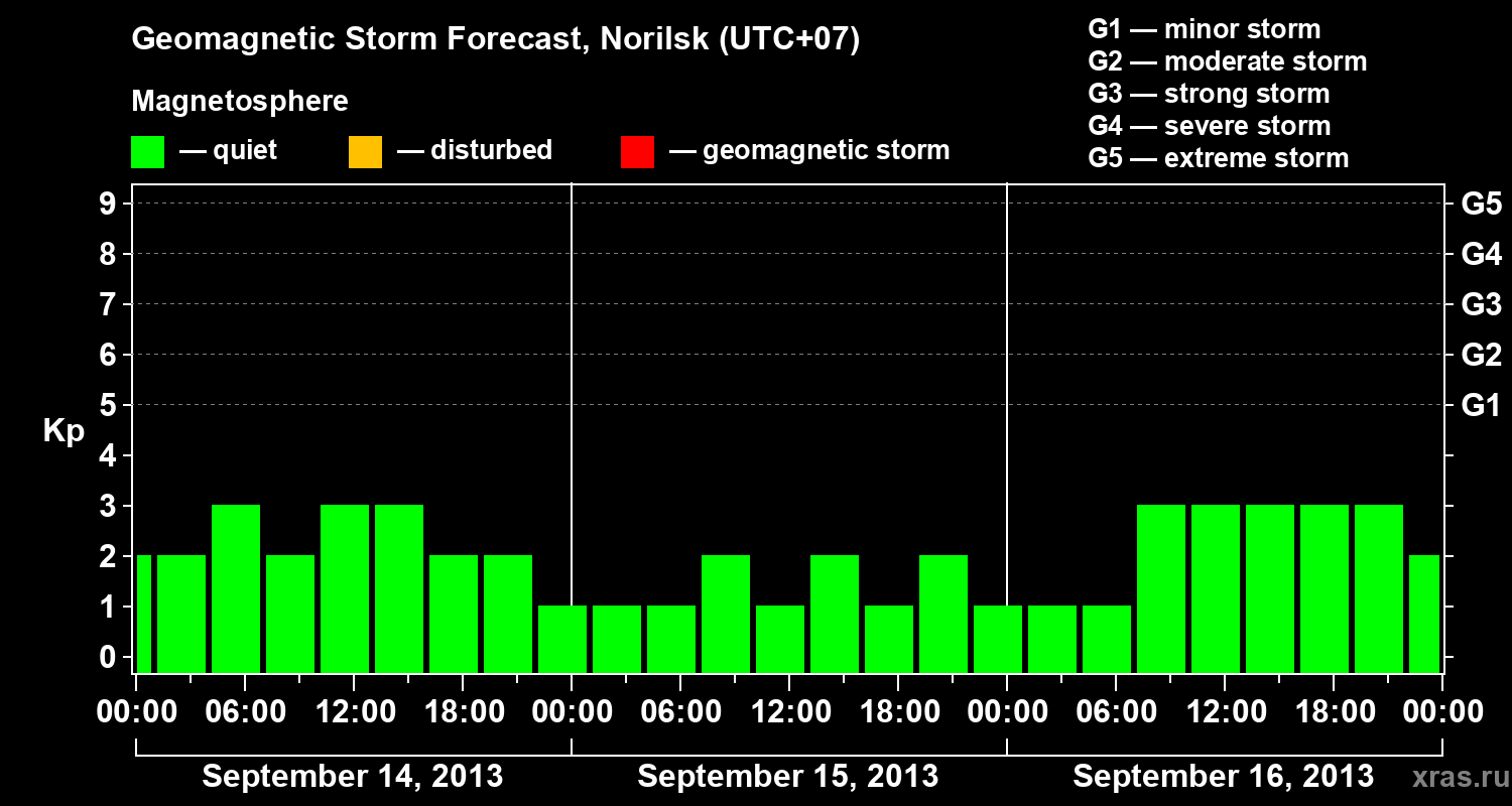 Geomagnetic storm forecast in Norilsk for Sep 14, 2013