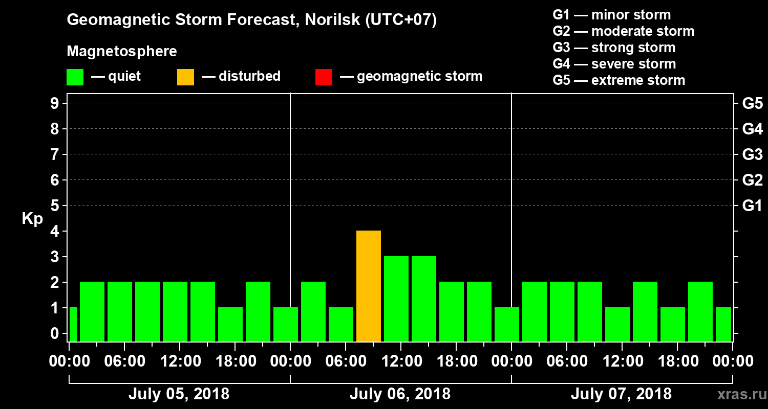 Geomagnetic activity forecast in Norilsk — Jul 05, 2018