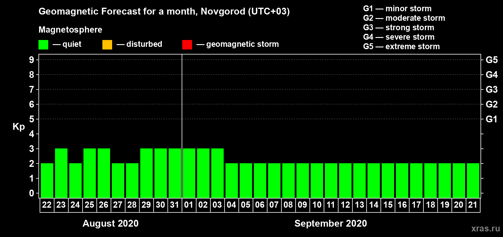 Geomagnetic activity forecast in Novgorod — Aug 22, 2020