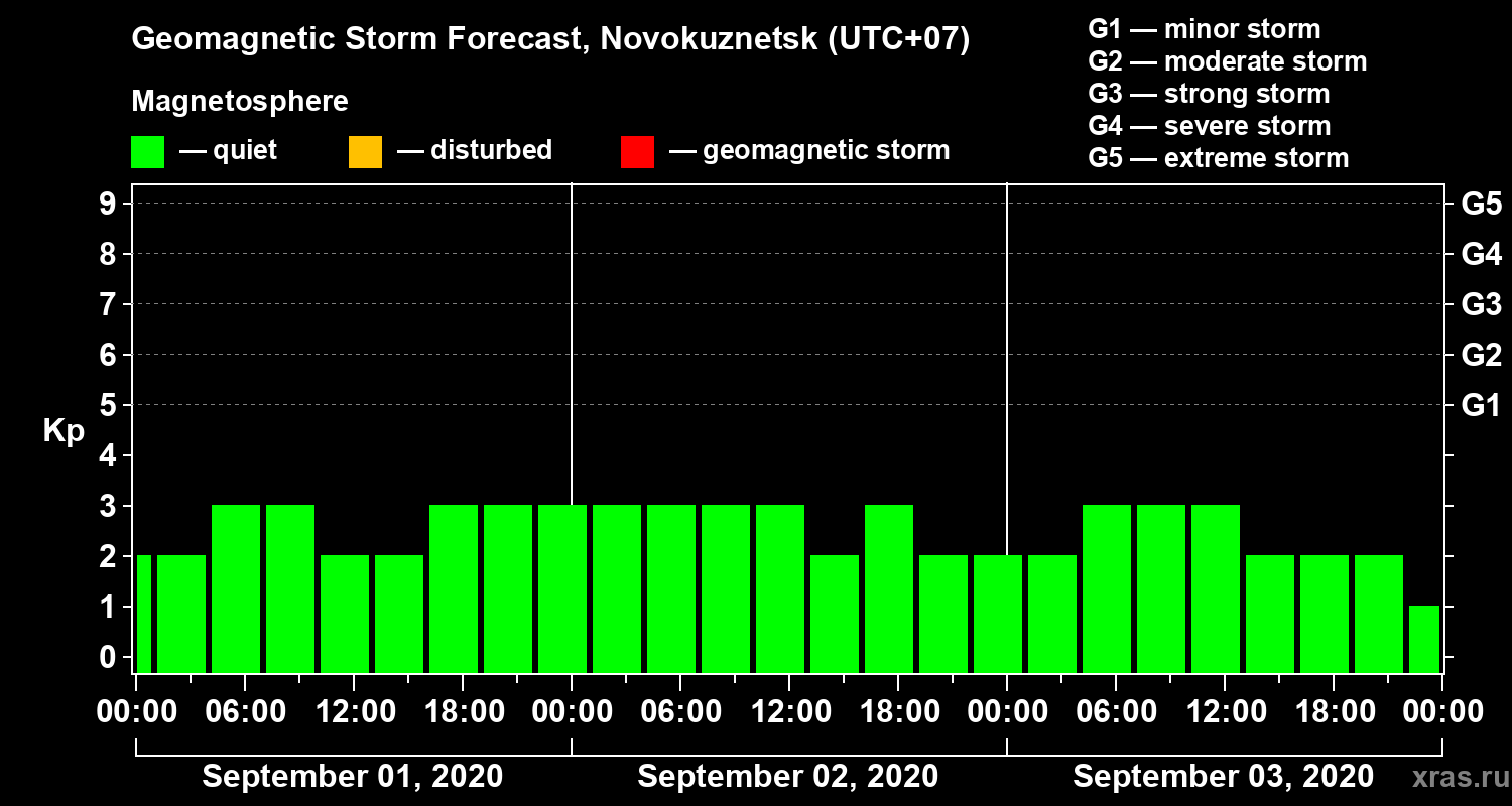 Geomagnetic storm forecast in Novokuznetsk for Sep 01, 2020