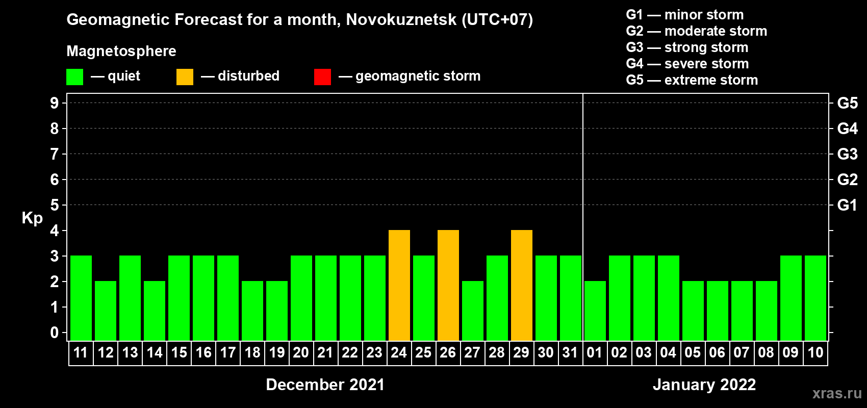 Geomagnetic activity forecast in Novokuznetsk — Dec 11, 2021