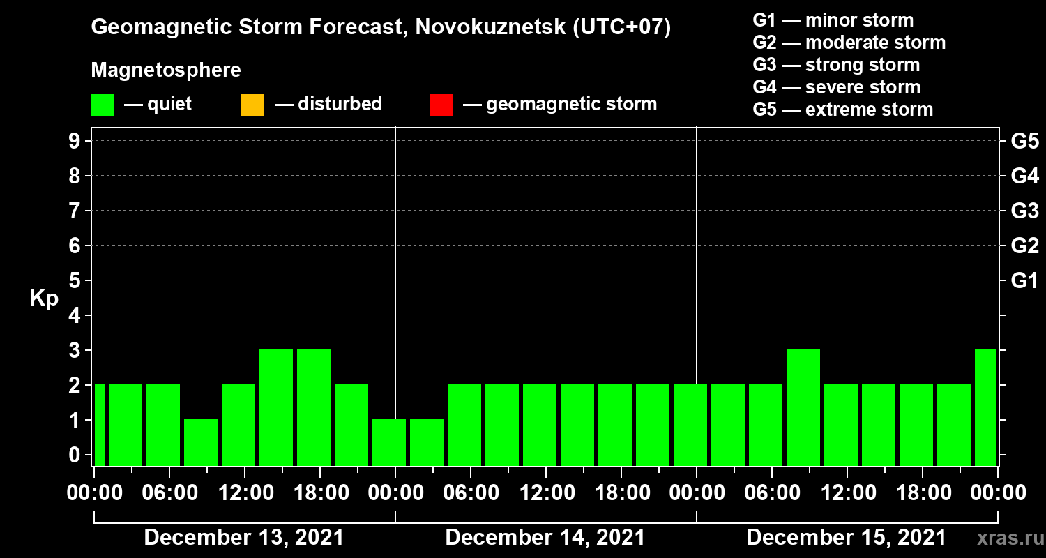Geomagnetic activity forecast in Novokuznetsk — Dec 13, 2021