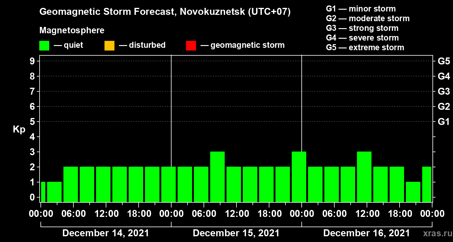 Geomagnetic activity forecast in Novokuznetsk — Dec 14, 2021