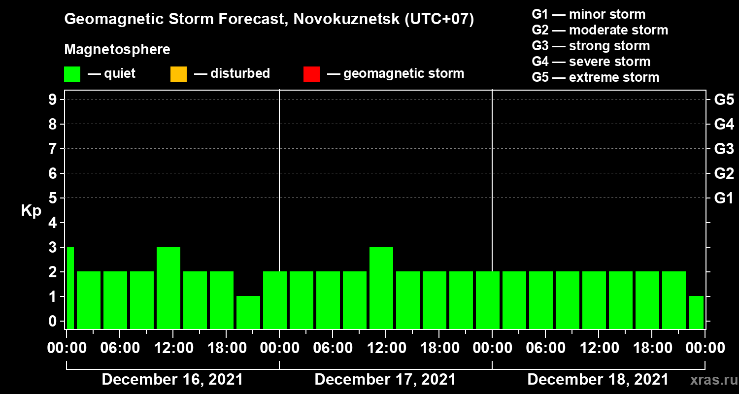 Geomagnetic activity forecast in Novokuznetsk — Dec 16, 2021