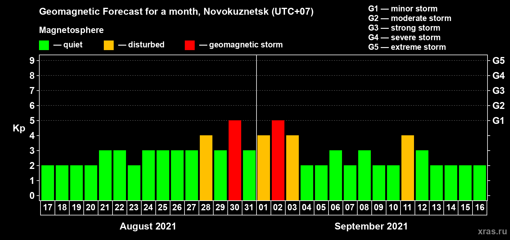 Geomagnetic storm forecast in Novokuznetsk for Aug 17, 2021