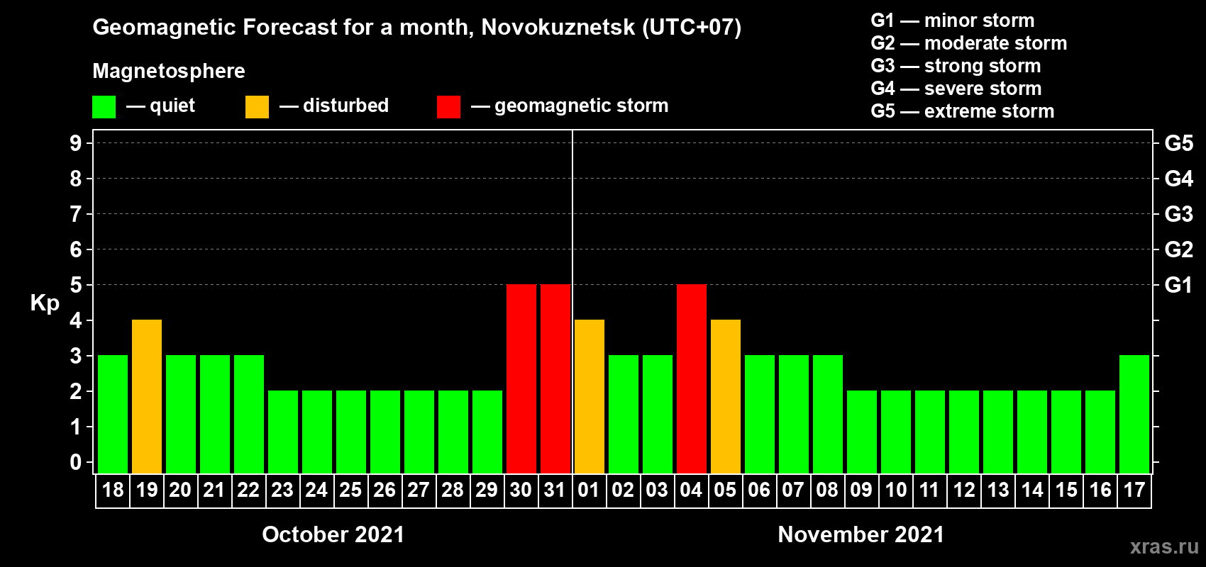 Geomagnetic activity forecast in Novokuznetsk — Oct 18, 2021