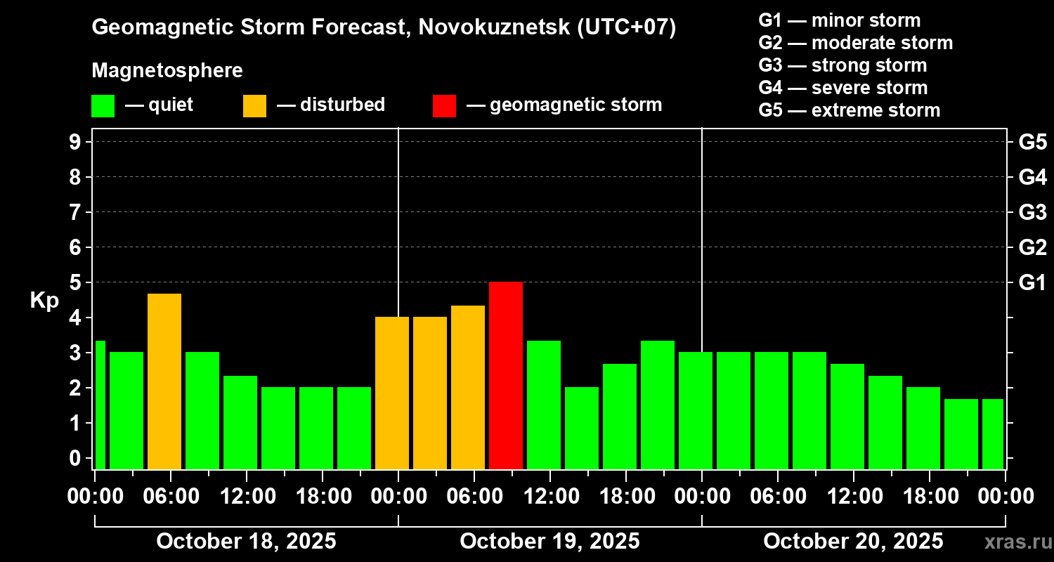 Geomagnetic storm forecast in Novokuznetsk for Oct 18, 2025