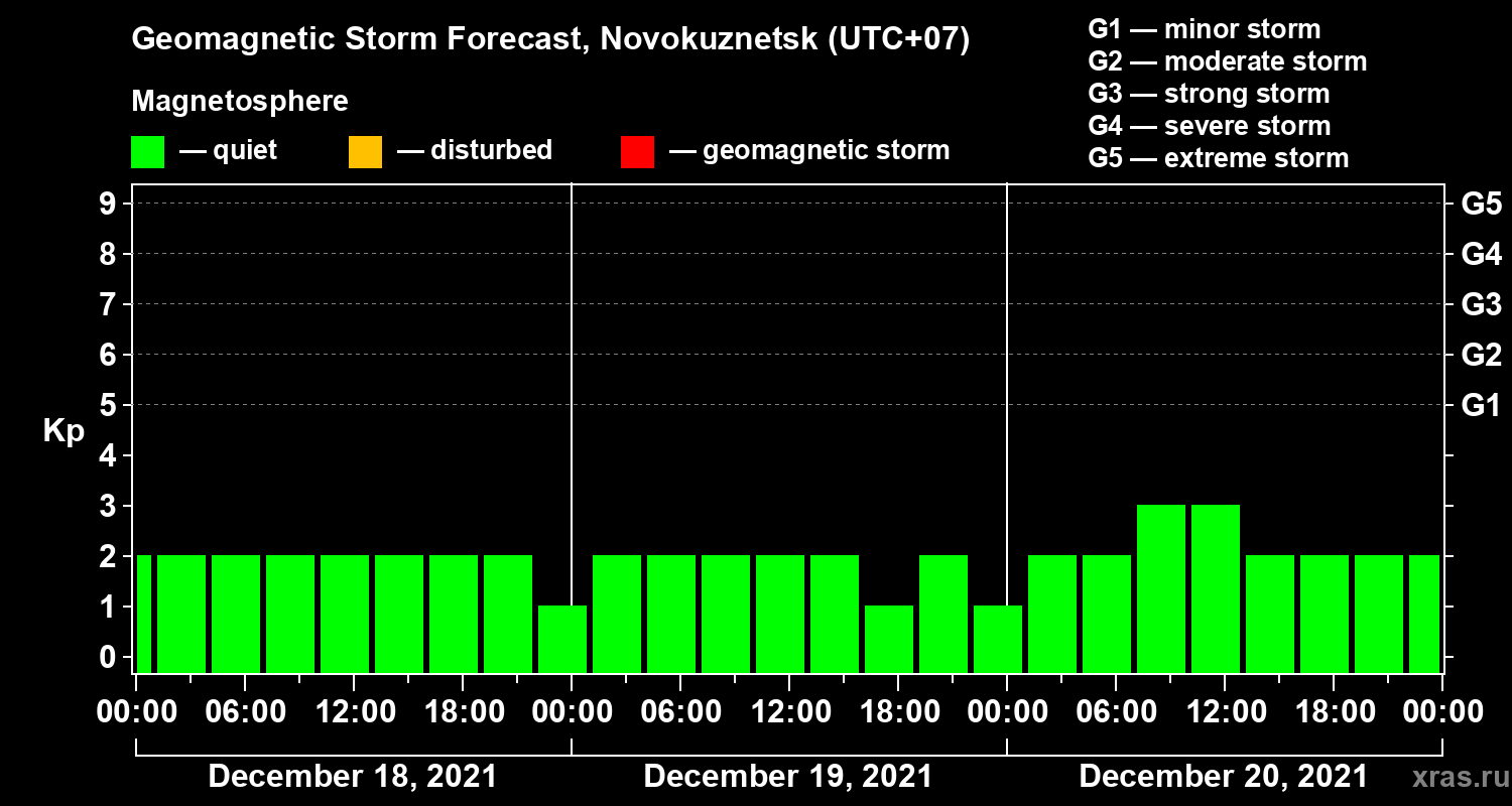 Geomagnetic activity forecast in Novokuznetsk — Dec 18, 2021