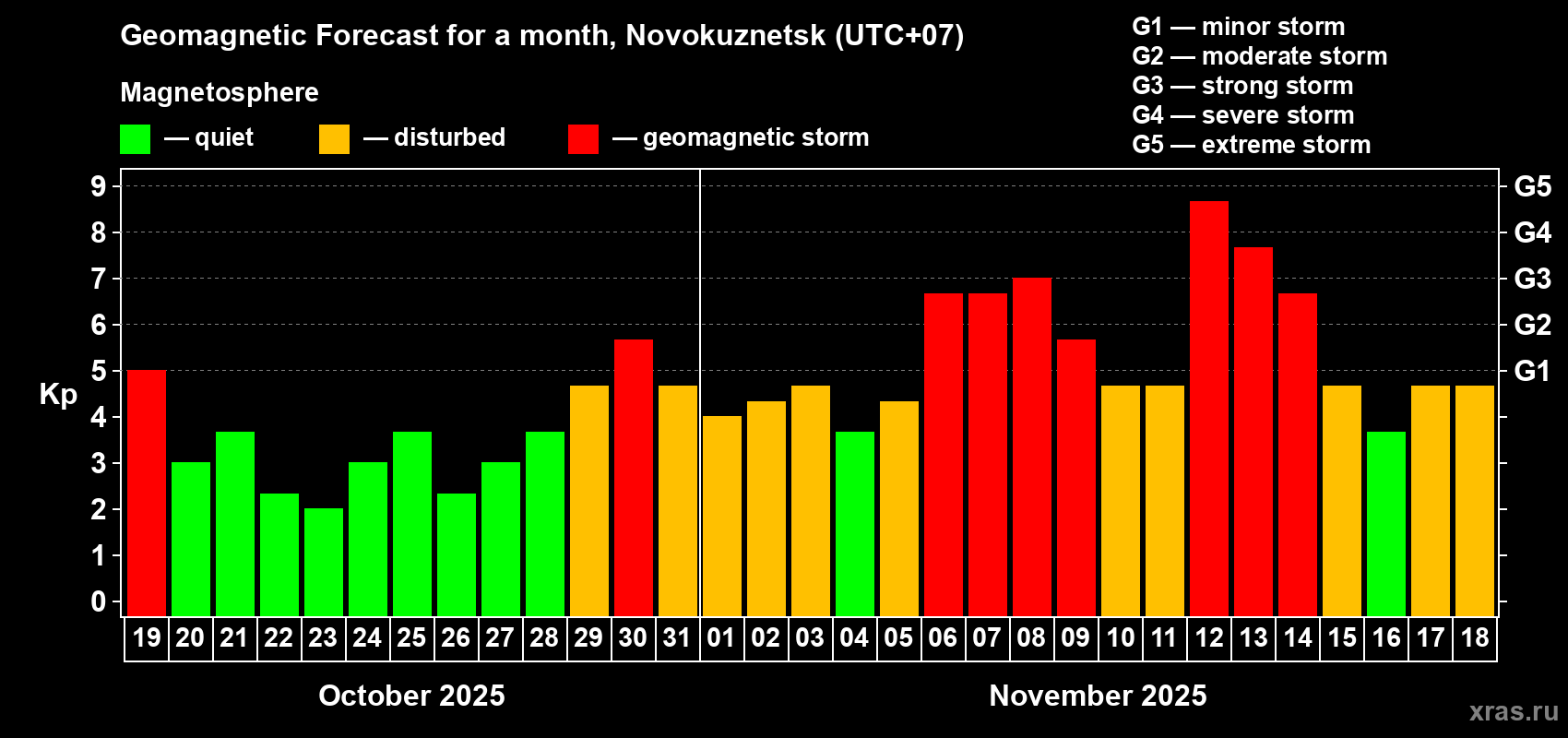 Geomagnetic storm forecast in Novokuznetsk for Oct 19, 2025