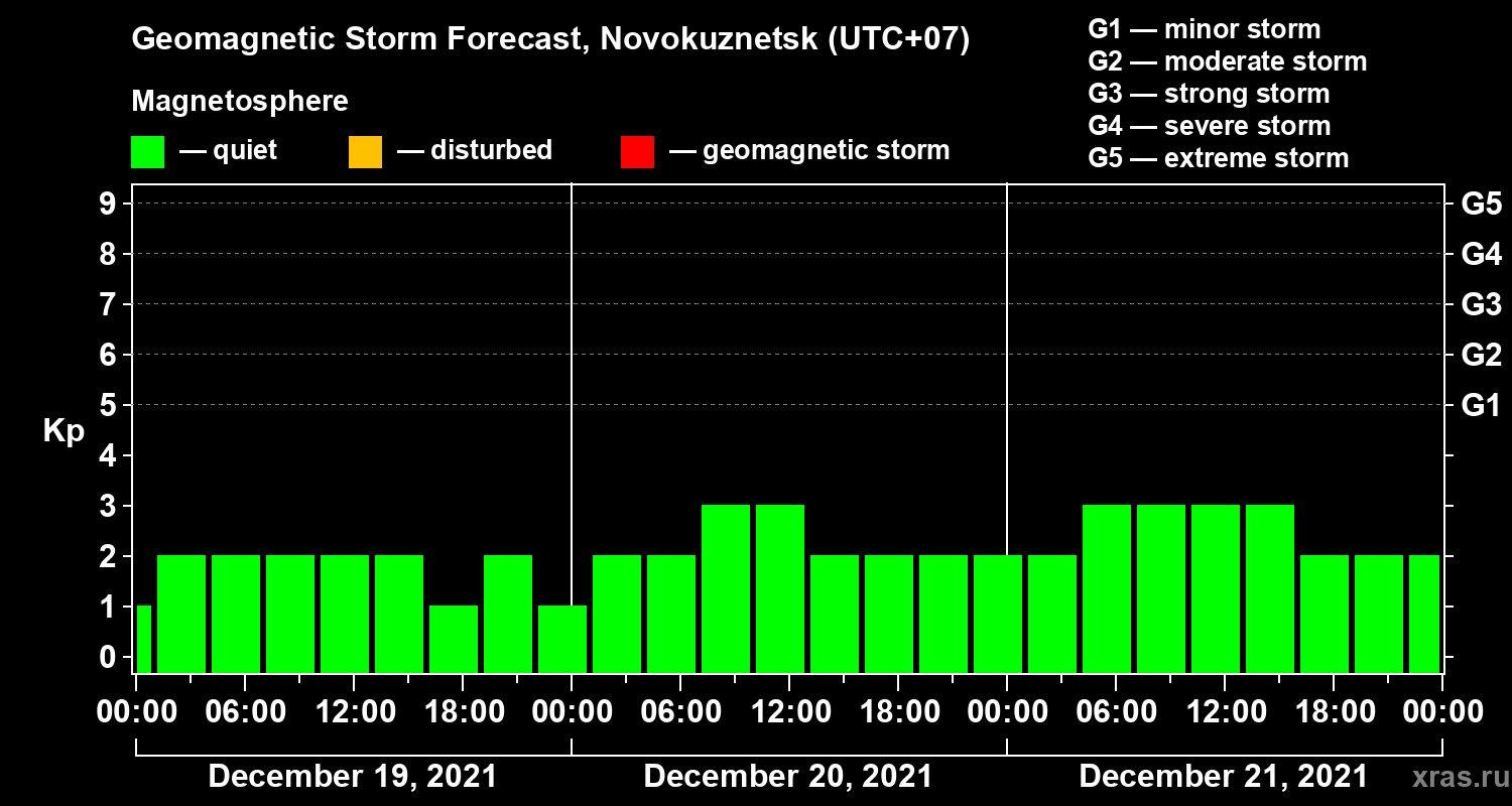 Geomagnetic activity forecast in Novokuznetsk — Dec 19, 2021