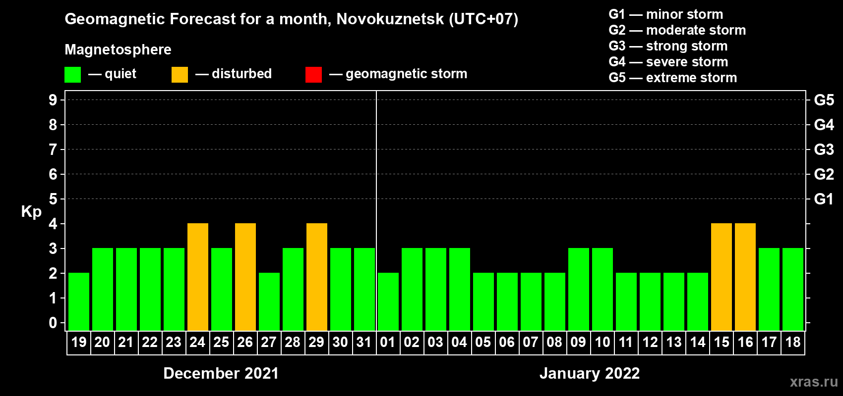 Geomagnetic storm forecast in Novokuznetsk for Dec 19, 2021