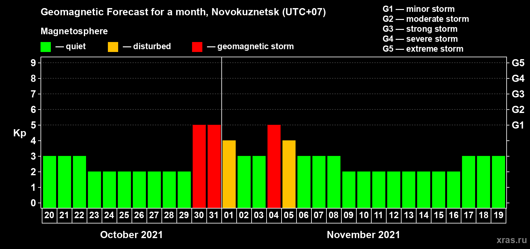 Geomagnetic storm forecast in Novokuznetsk for Oct 20, 2021