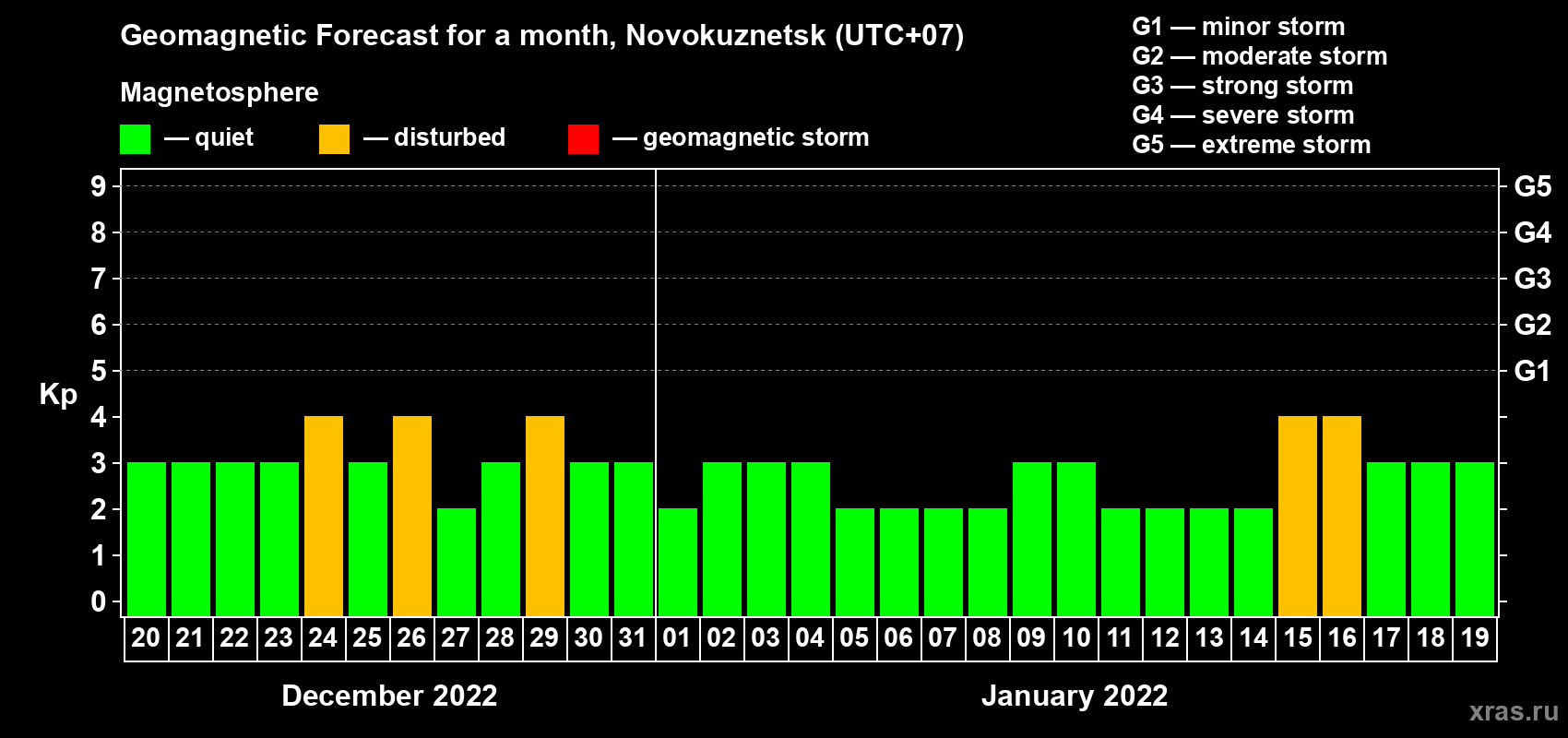 Geomagnetic storm forecast in Novokuznetsk for Dec 20, 2021