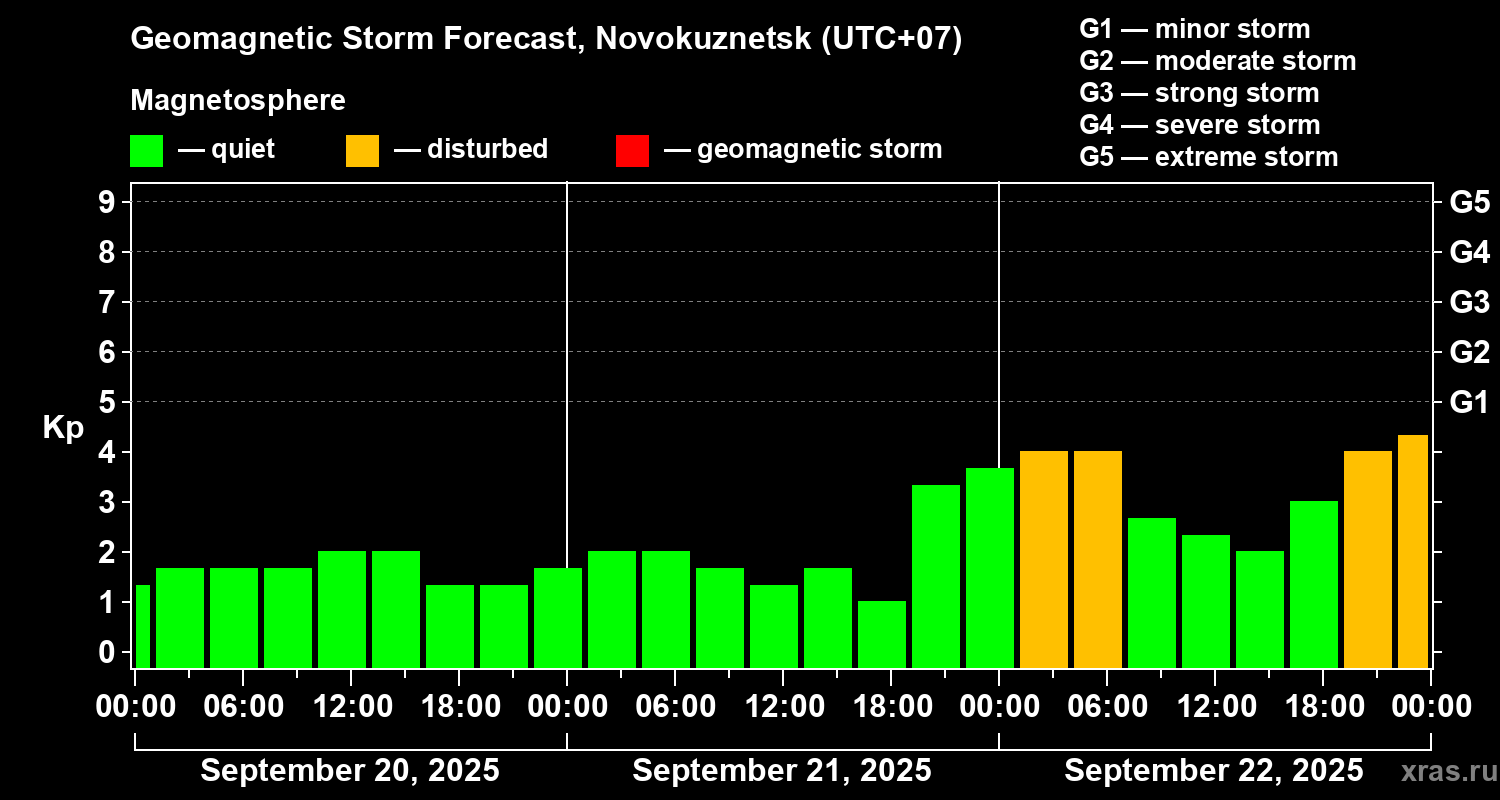 Geomagnetic storm forecast in Novokuznetsk for Sep 20, 2025
