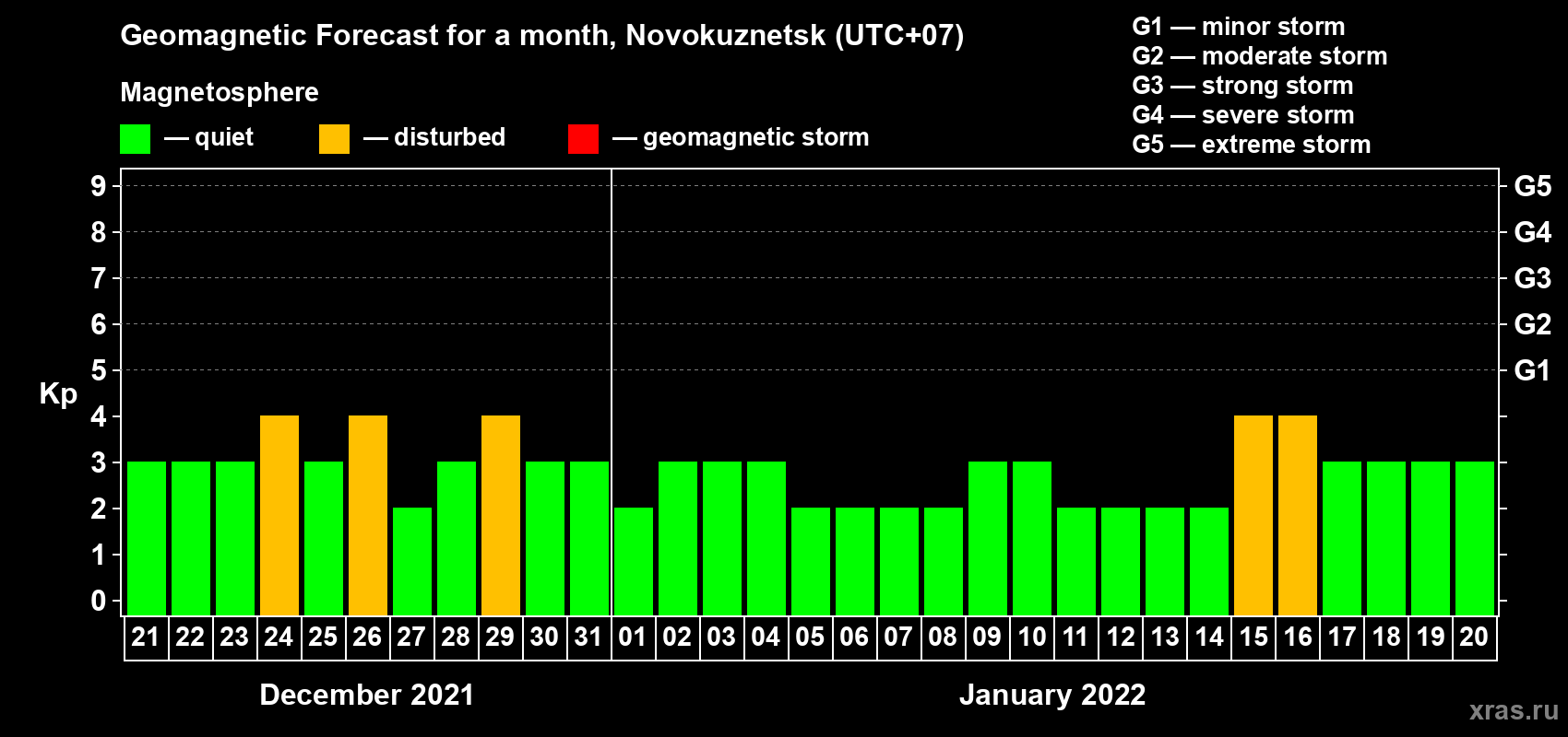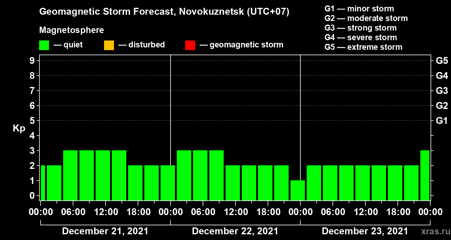 Geomagnetic activity forecast in Novokuznetsk — Dec 21, 2021