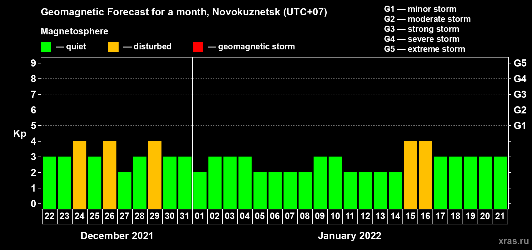 Geomagnetic storm forecast in Novokuznetsk for Dec 22, 2021
