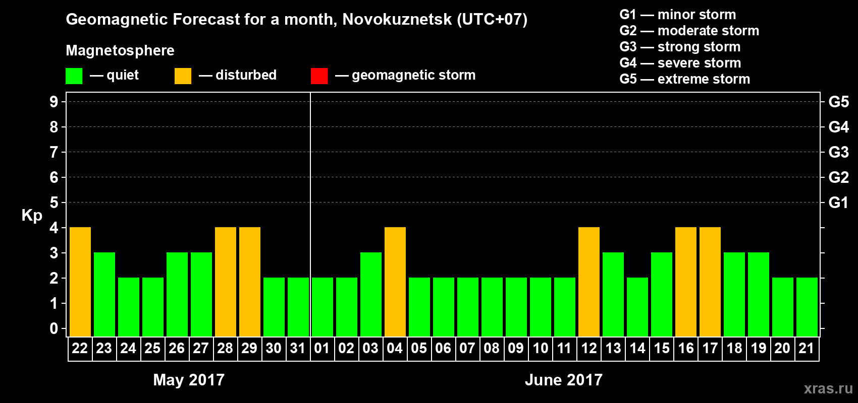 Geomagnetic storm forecast in Novokuznetsk for May 22, 2017