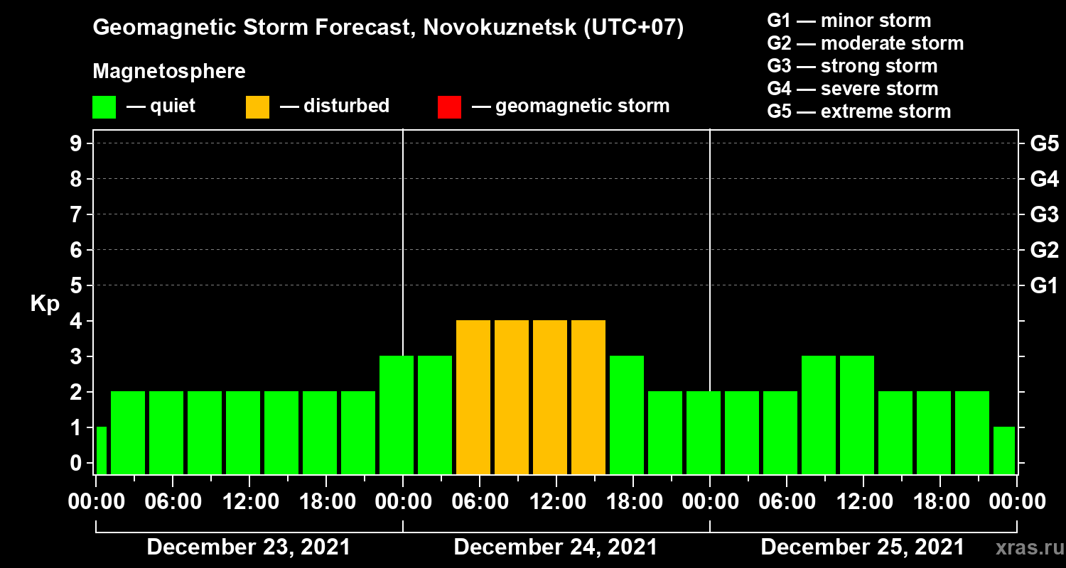 Geomagnetic activity forecast in Novokuznetsk — Dec 23, 2021