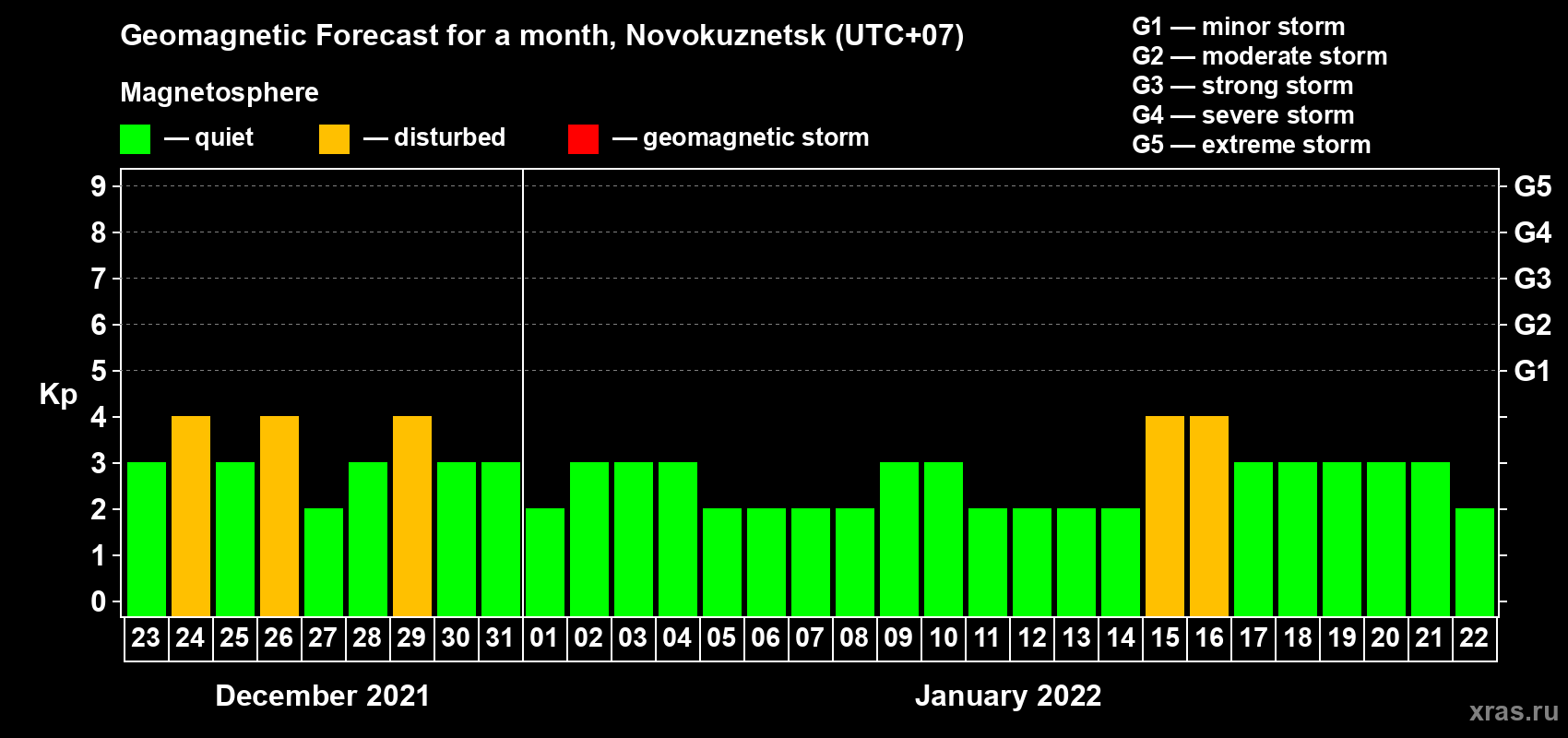 Geomagnetic storm forecast in Novokuznetsk for Dec 23, 2021