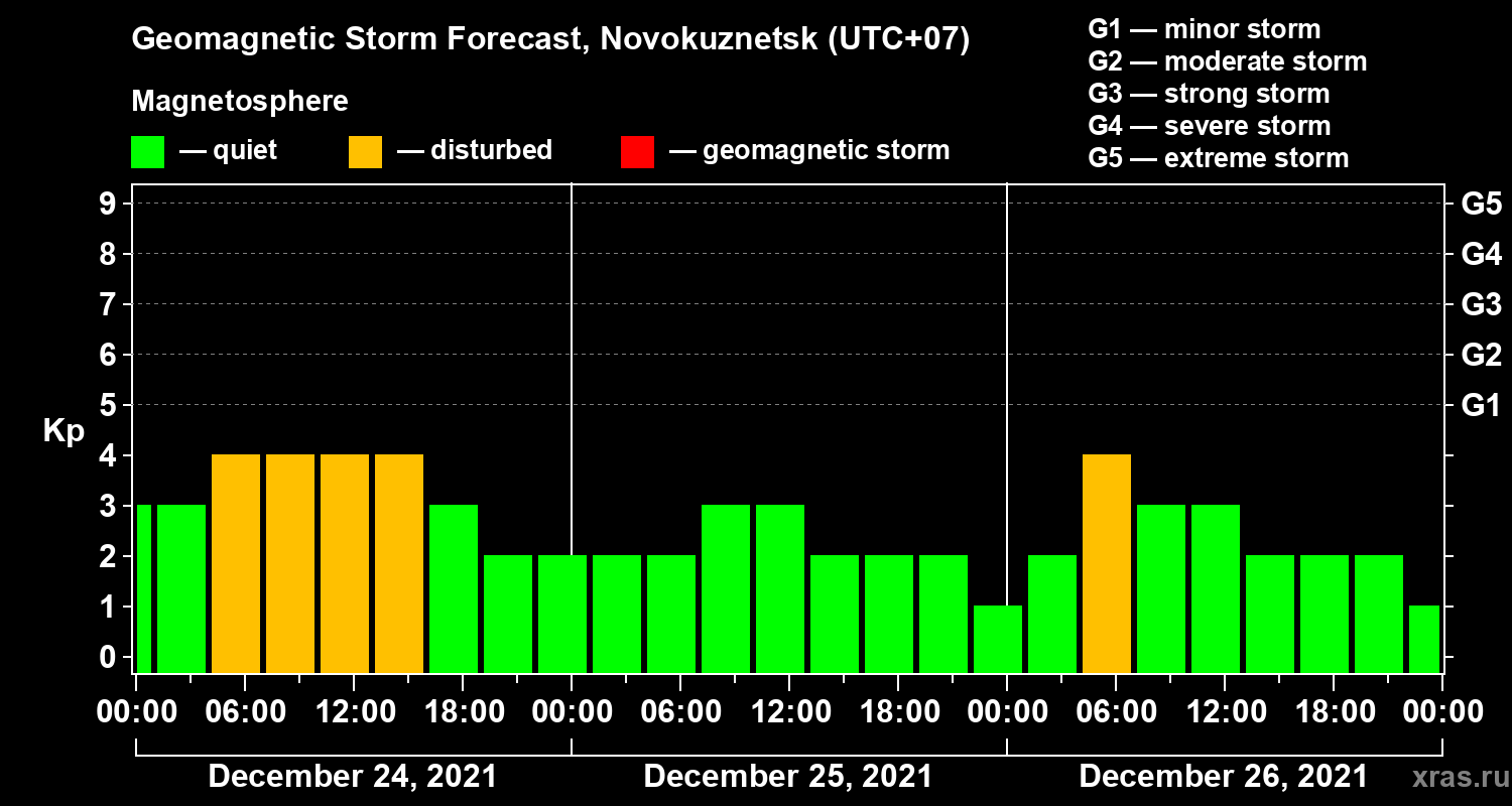 Geomagnetic activity forecast in Novokuznetsk — Dec 24, 2021
