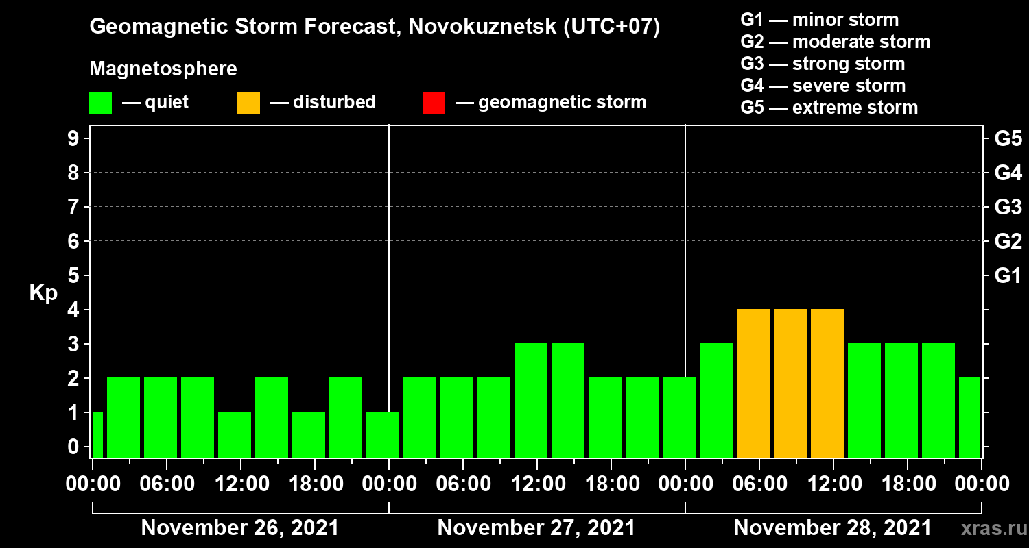 Geomagnetic activity forecast in Novokuznetsk — Nov 26, 2021