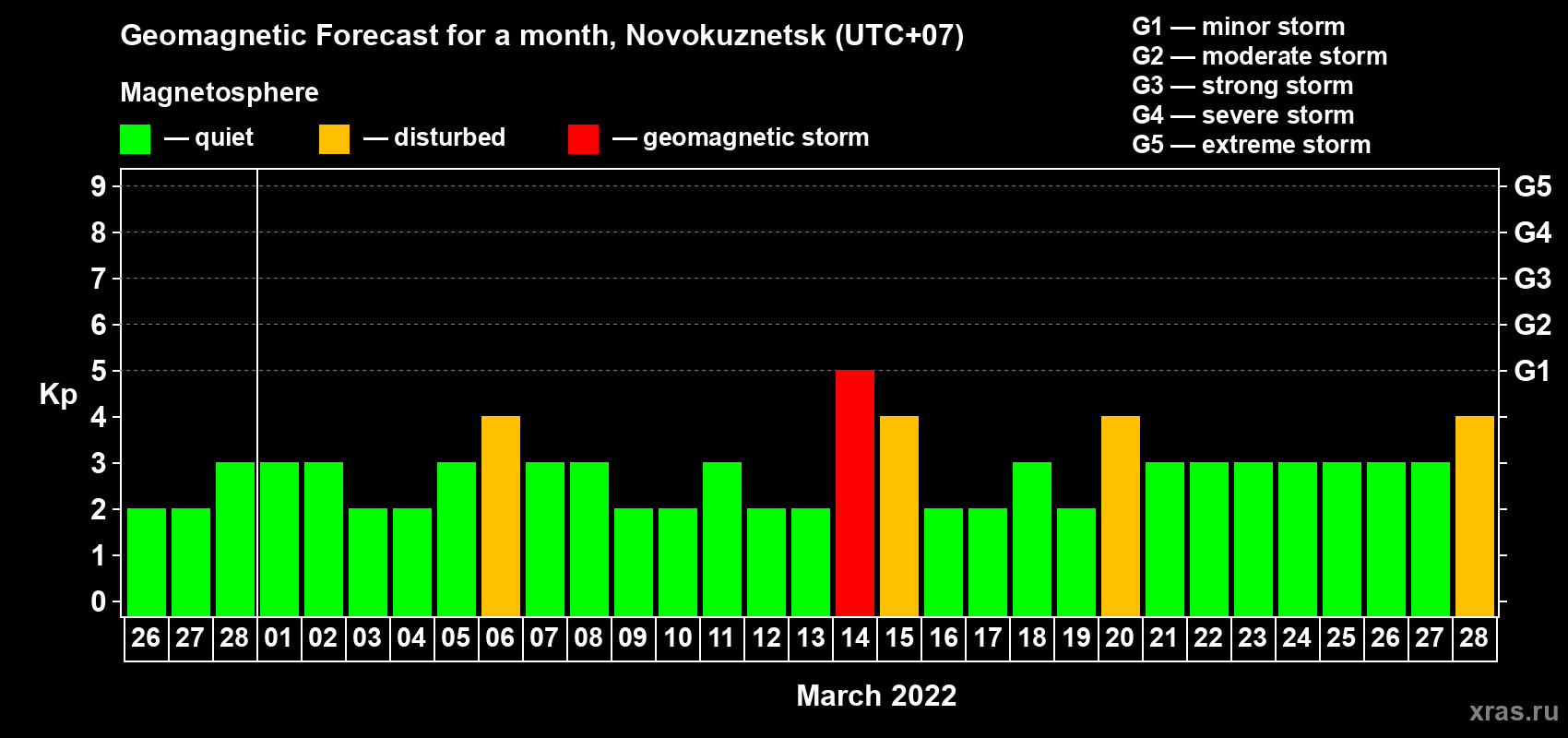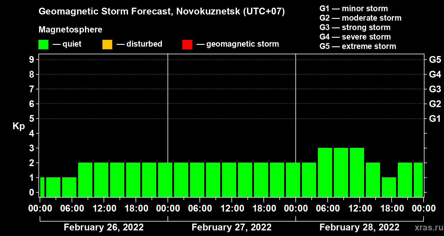 Geomagnetic storm forecast in Novokuznetsk for Feb 26, 2022