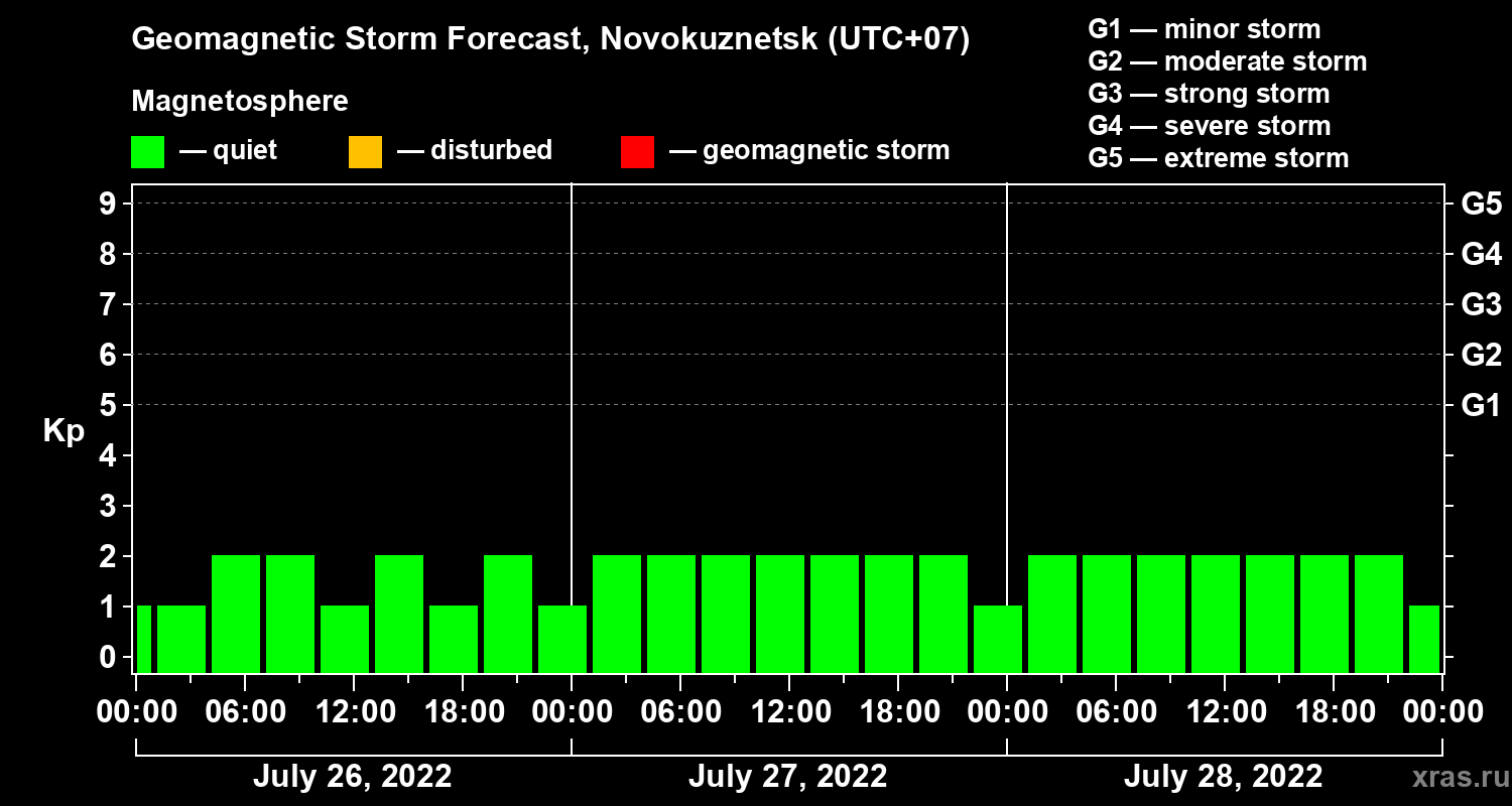 Geomagnetic storm forecast in Novokuznetsk for Jul 26, 2022
