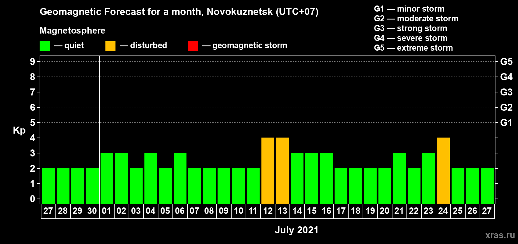 Geomagnetic storm forecast in Novokuznetsk for Jun 27, 2021