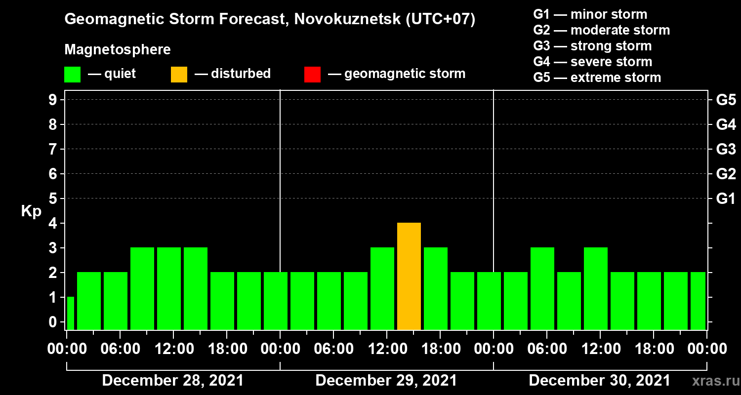 Geomagnetic storm forecast in Novokuznetsk for Dec 28, 2021