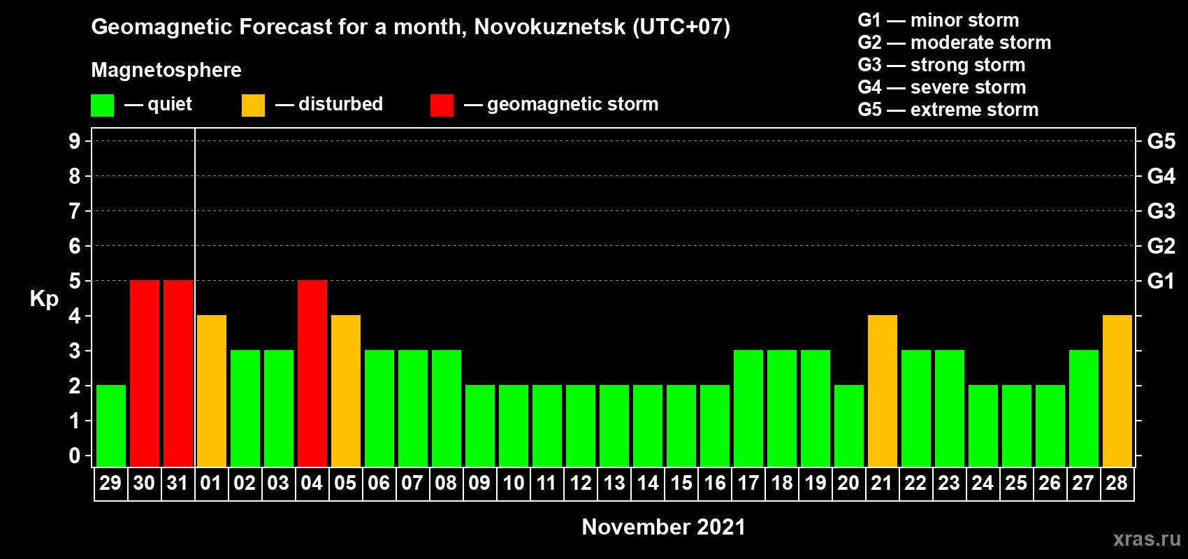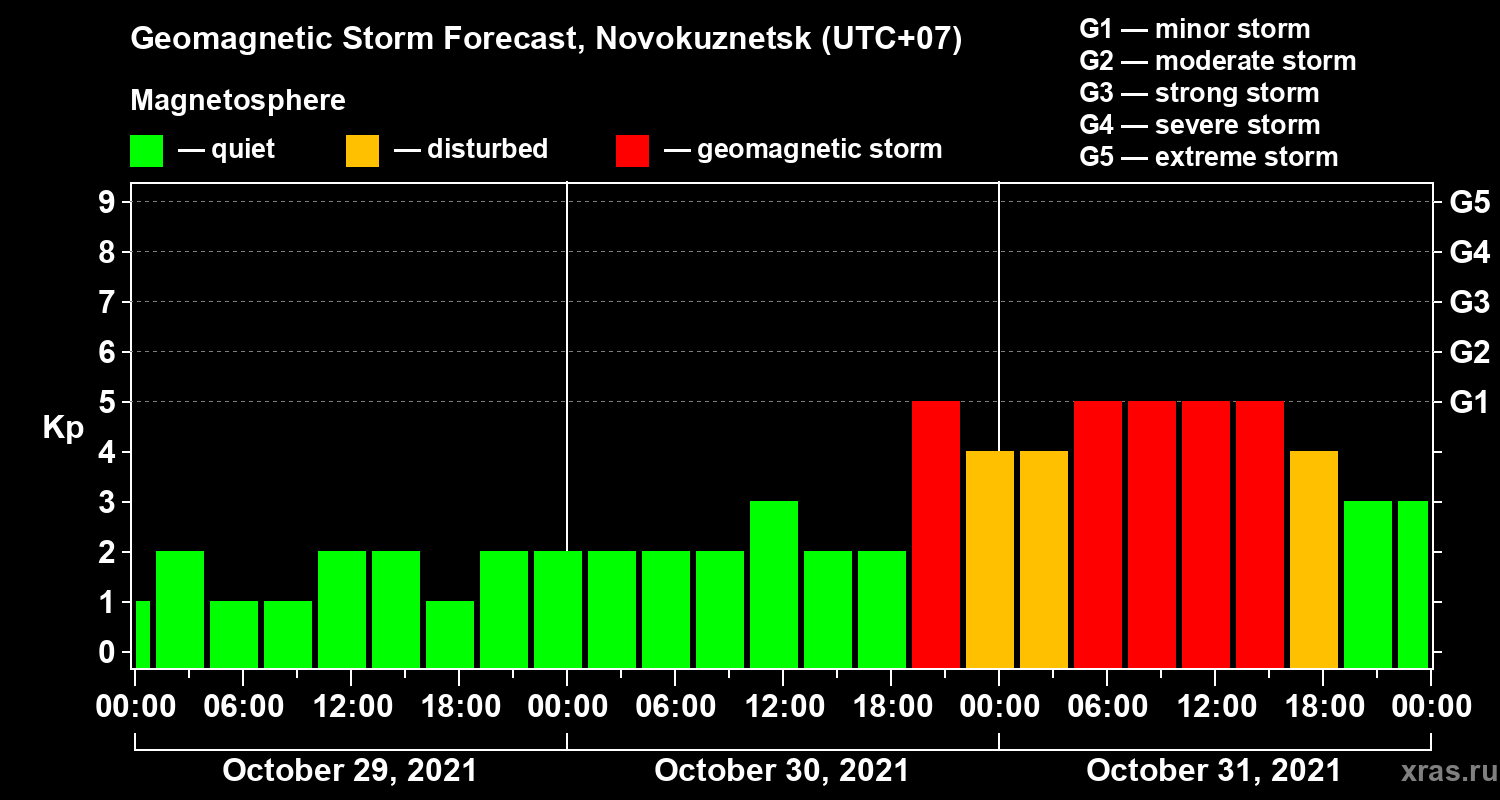 Geomagnetic activity forecast in Novokuznetsk — Oct 29, 2021