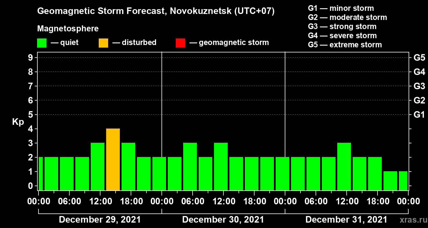 Geomagnetic storm forecast in Novokuznetsk for Dec 29, 2021