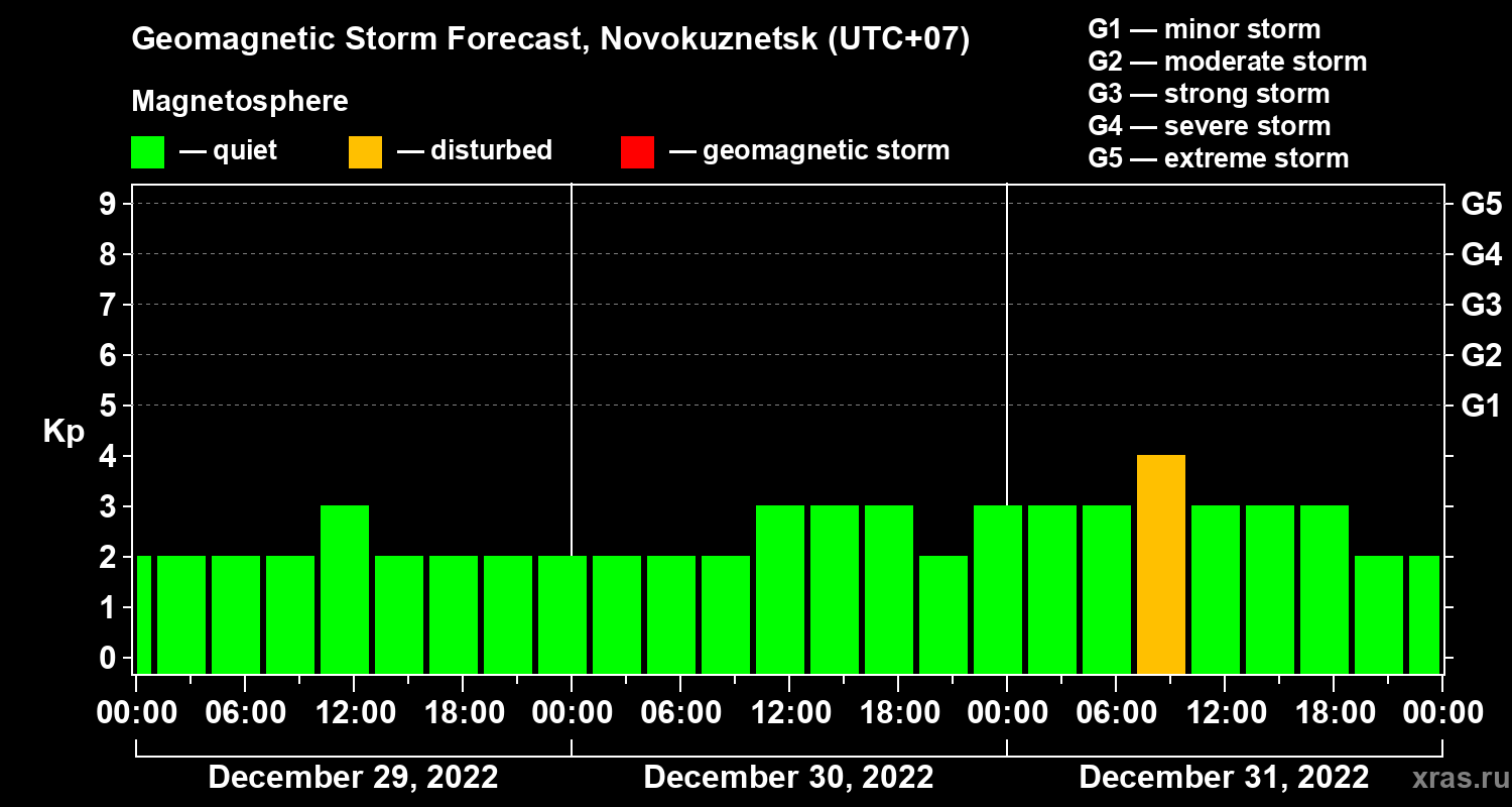 Geomagnetic activity forecast in Novokuznetsk — Dec 29, 2022