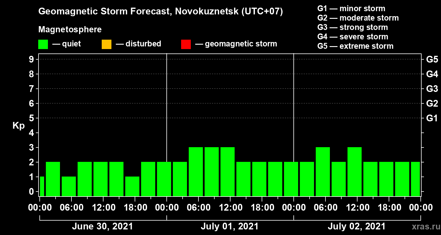 Geomagnetic activity forecast in Novokuznetsk — Jun 30, 2021