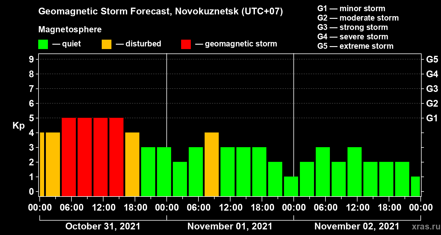 Geomagnetic activity forecast in Novokuznetsk — Oct 31, 2021
