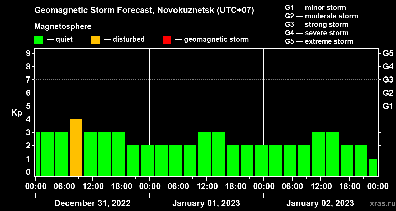 Geomagnetic storm forecast in Novokuznetsk for Dec 31, 2022