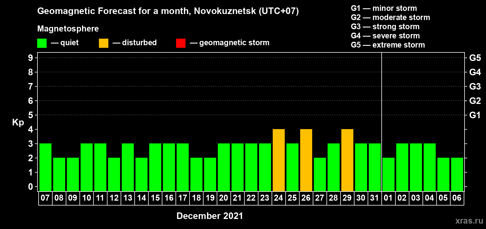Geomagnetic activity forecast in Novokuznetsk — Dec 07, 2021