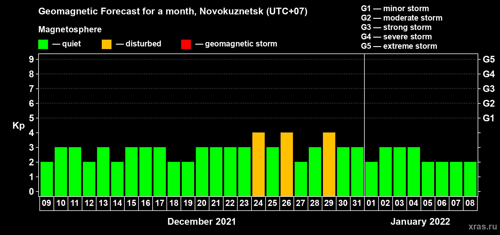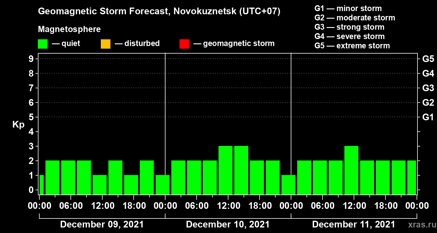 Geomagnetic activity forecast in Novokuznetsk — Dec 09, 2021