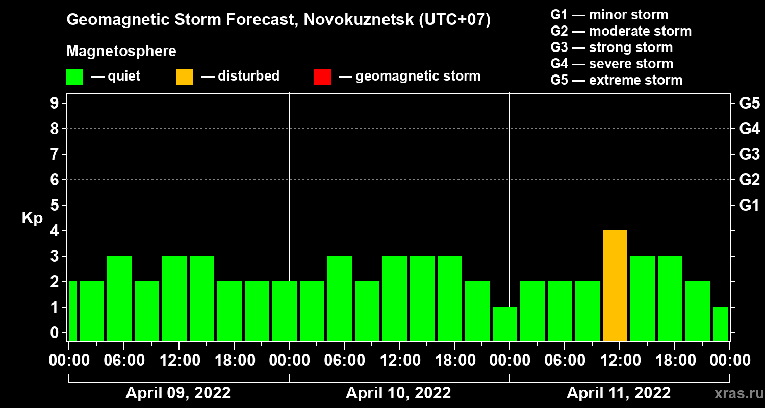 Geomagnetic storm forecast in Novokuznetsk for Apr 09, 2022