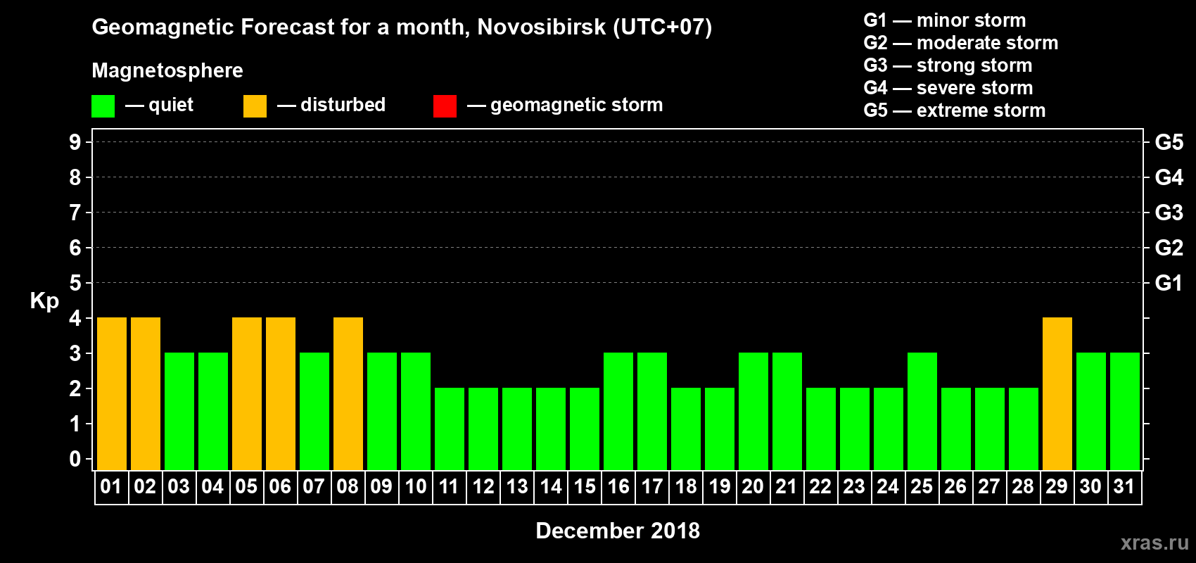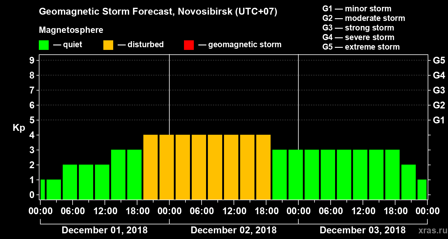 Geomagnetic storm forecast in Novosibirsk for Dec 01, 2018