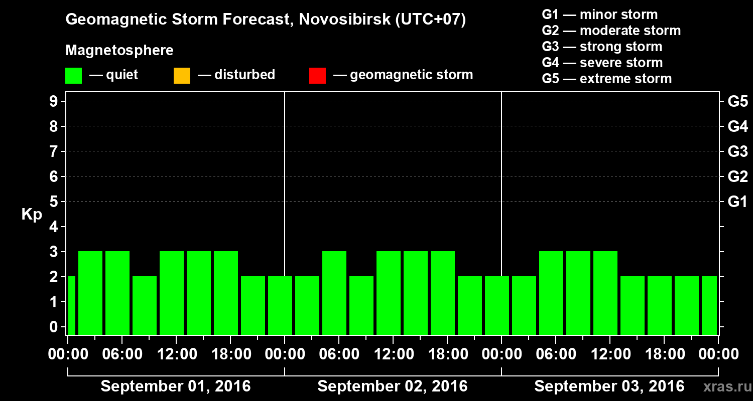 Geomagnetic storm forecast in Novosibirsk for Sep 01, 2016