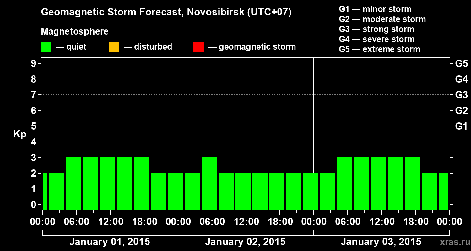 Geomagnetic storm forecast in Novosibirsk for Jan 01, 2015