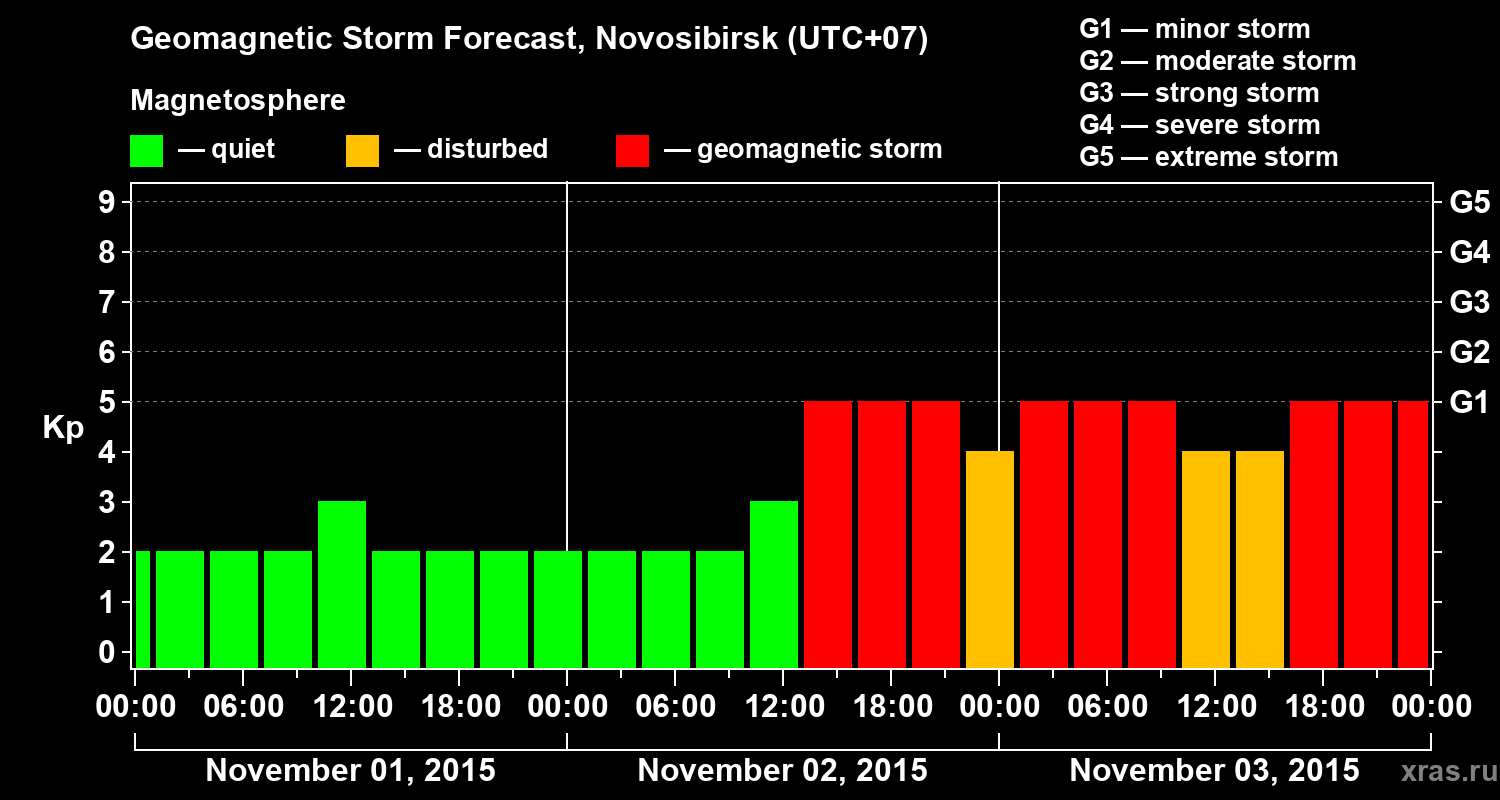 Geomagnetic storm forecast in Novosibirsk for Nov 01, 2015