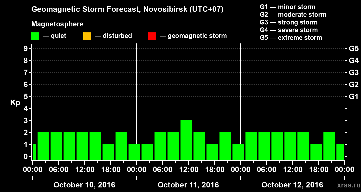 Geomagnetic storm forecast in Novosibirsk for Oct 10, 2016