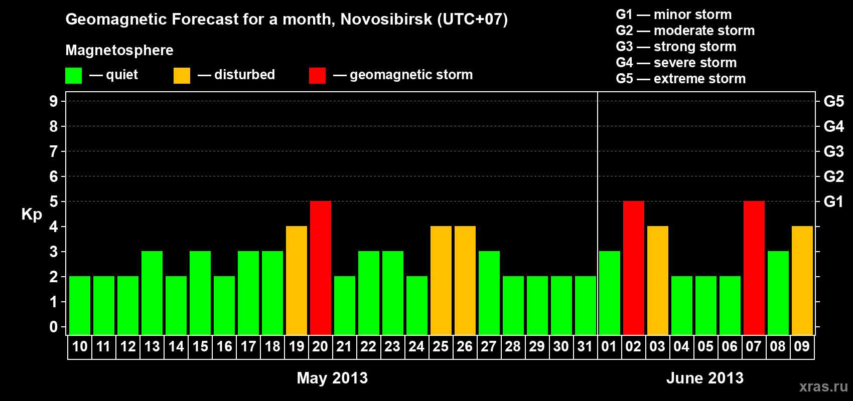 Geomagnetic storm forecast in Novosibirsk for May 10, 2013