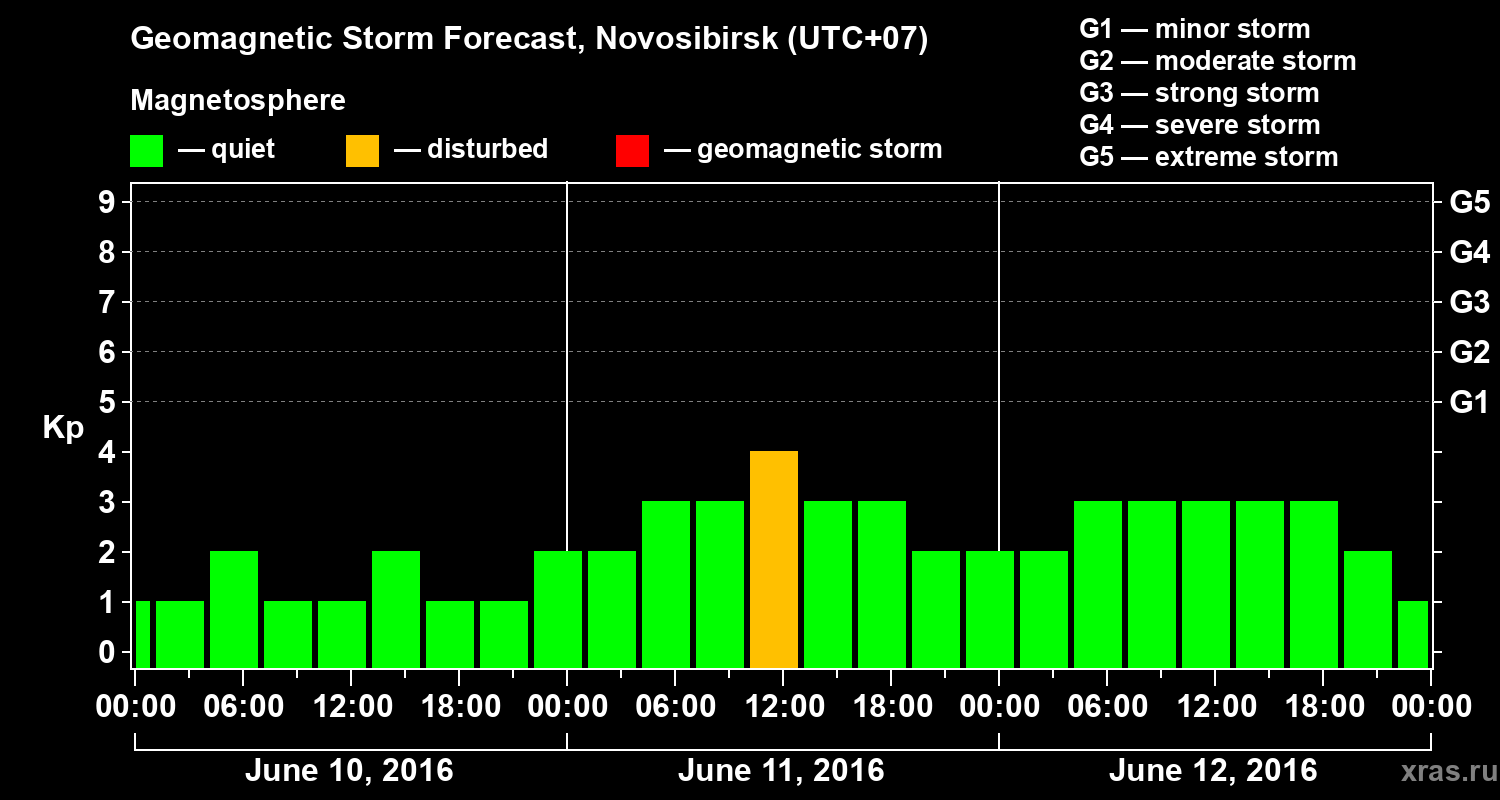 Geomagnetic storm forecast in Novosibirsk for Jun 10, 2016